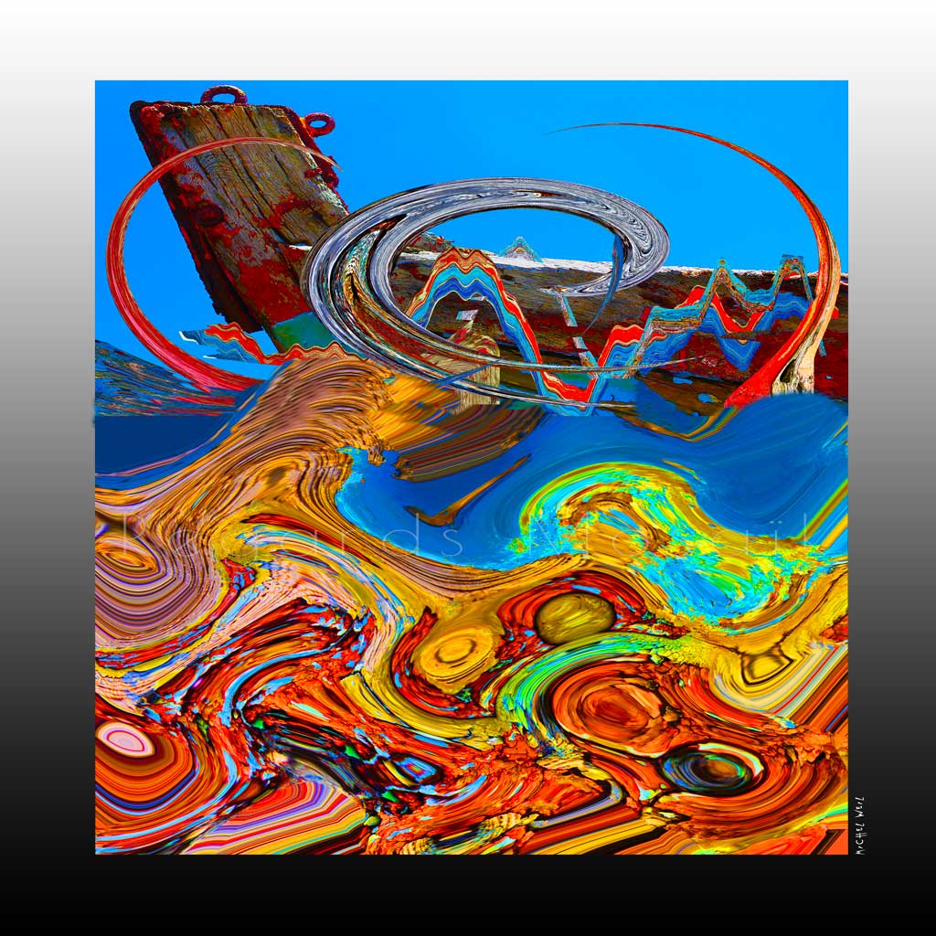 Les flots tumultueux enveloppent l’embarcation hors du temps.