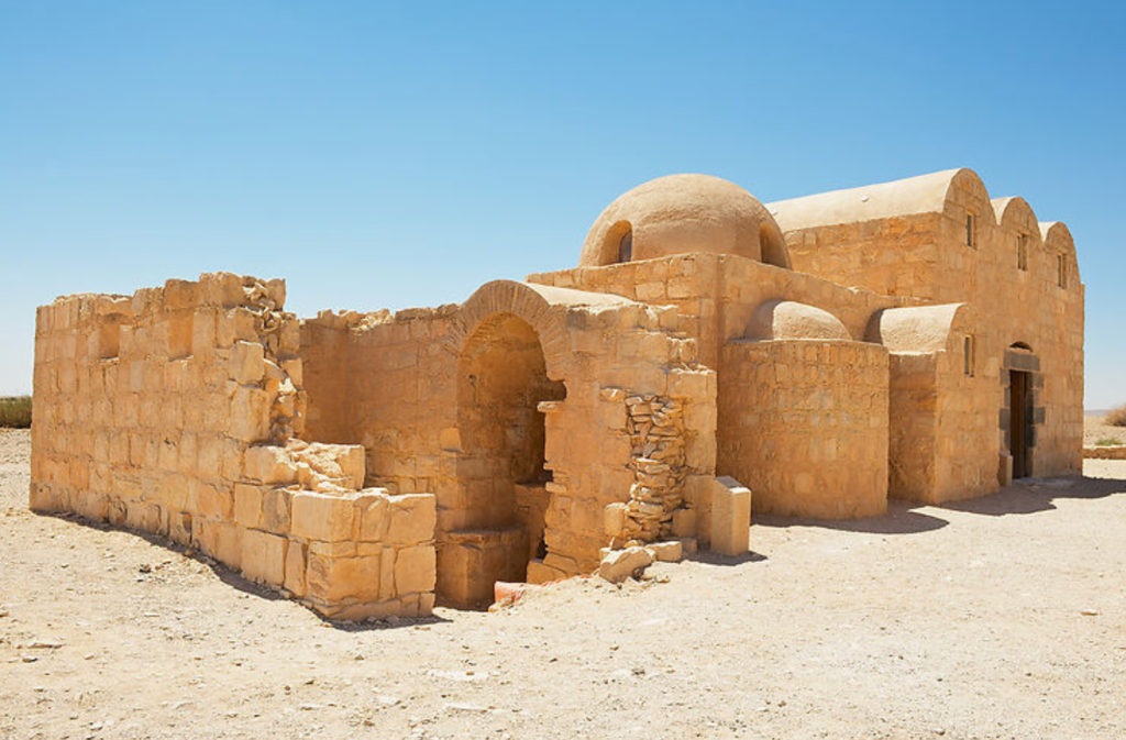 Au beau milieu du désert de rocaille, un chapelet de petits palais arabes parsème le paysage. Ils n’avaient pas vocation à servir de résidence au 8e siècle. C’était avant tout un lieu de détente, après les parties de chasse des califes omeyyades de Damas. Qasr al Azraq, Qasr-Amra et Qasr-Kharana.