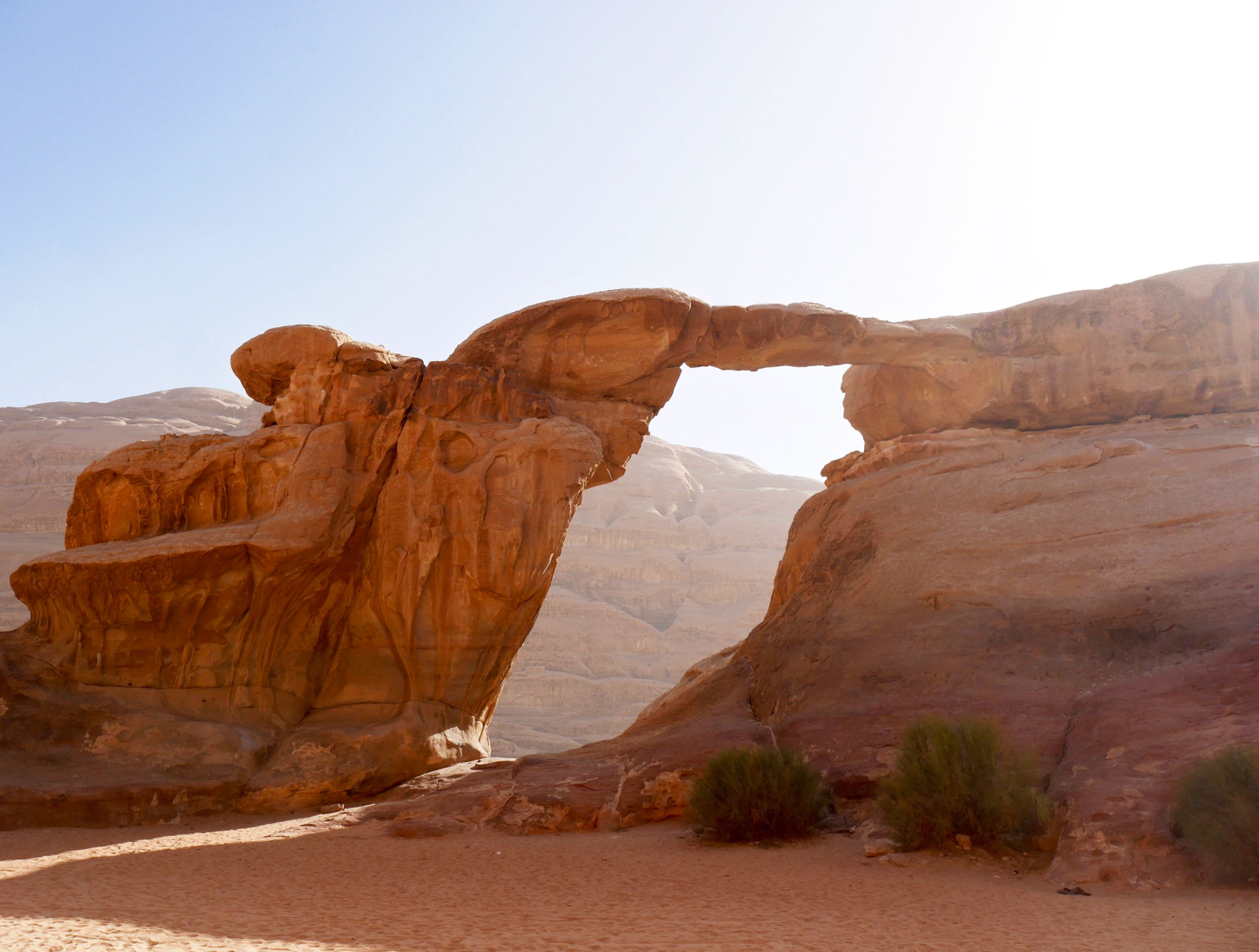 À l’extrême sud de la Jordanie, le désert de Wadi Rum est l’un des endroits les plus envoûtants de la planète. S’étendant sur 70 kilomètres, ses dunes variant du rouge à l’orange sont bordées de sommets de granit culminant à 1 850 mètres. Sculpté par l’eau et le vent, ce labyrinthe de monolithes est le résultat spectaculaire de trente millions d’années d’érosion.