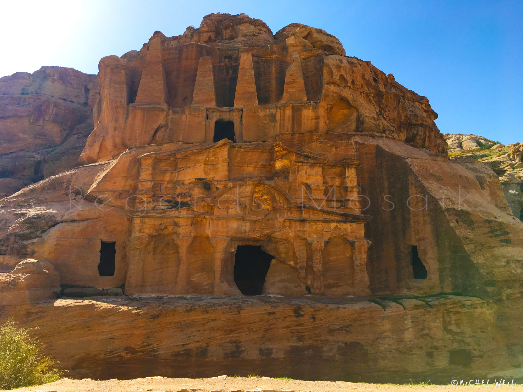Après l’entrée, première rencontre : Bab Al Siq qui est la dénomination arabe pour « Porte du Siq ». Tombeau aux obélisques et du Triclinium