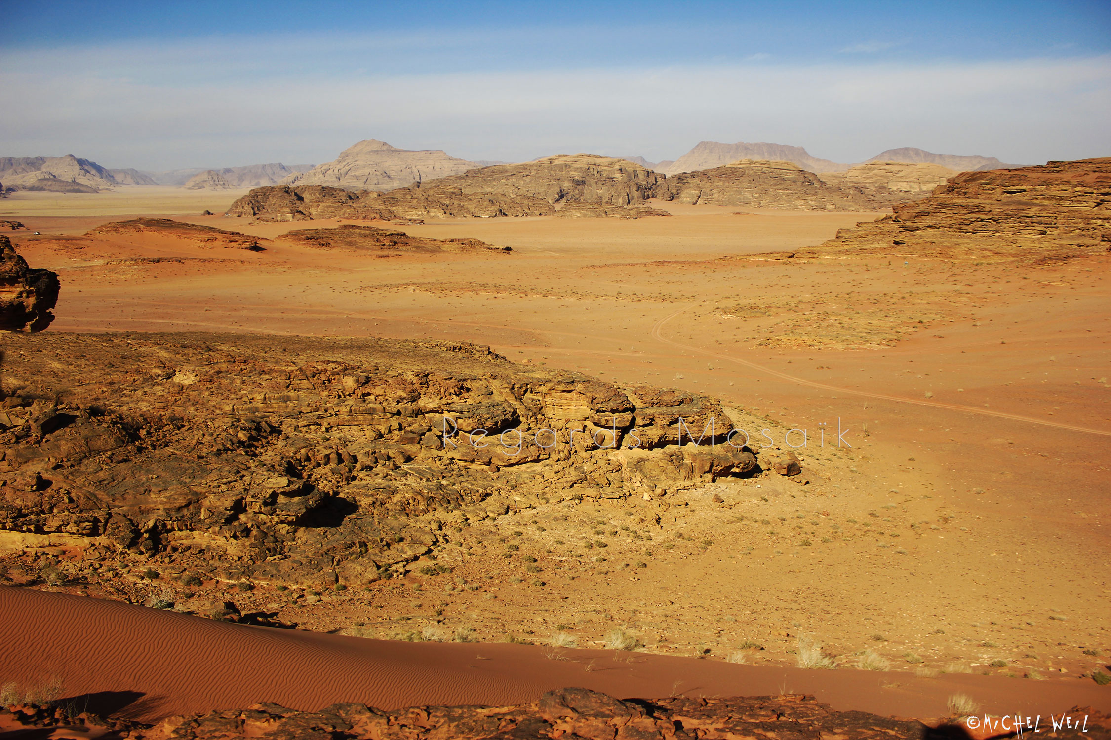 « Coincé entre deux mers, l’une Rouge et l’autre Morte, la Jordanie est un petit pays aux trois quarts envahi par le désert et longtemps peuplé exclusivement de nomades, une charnière entre le monde méditerranéen et l’Orient, où se succédèrent de nombreuses civilisations.